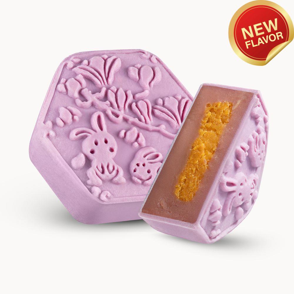 Khoai môn Okinawa bùi ngọt được nâng niu bởi lớp sữa dừa thơm béo, mềm mịn như tan trên đầu lưỡi. Trứng muối mằn mặn nhẹ nhàng ở trung tâm tạo điểm nhấn tinh tế, khiến chiếc bánh trở nên tròn vị, dịu dàng mà đầy cuốn hút. Sự kết hợp giữa vị béo bùi, ngọt nhẹ và mặn vừa đủ tạo nên tổng hòa êm ái, thỏa mãn cả vị giác lẫn cảm xúc. Đây là chiếc bánh lý tưởng dành cho những ai yêu sự dịu dàng, cân bằng, và muốn tìm thấy chút yên bình trong mùa trăng đoàn viên.
