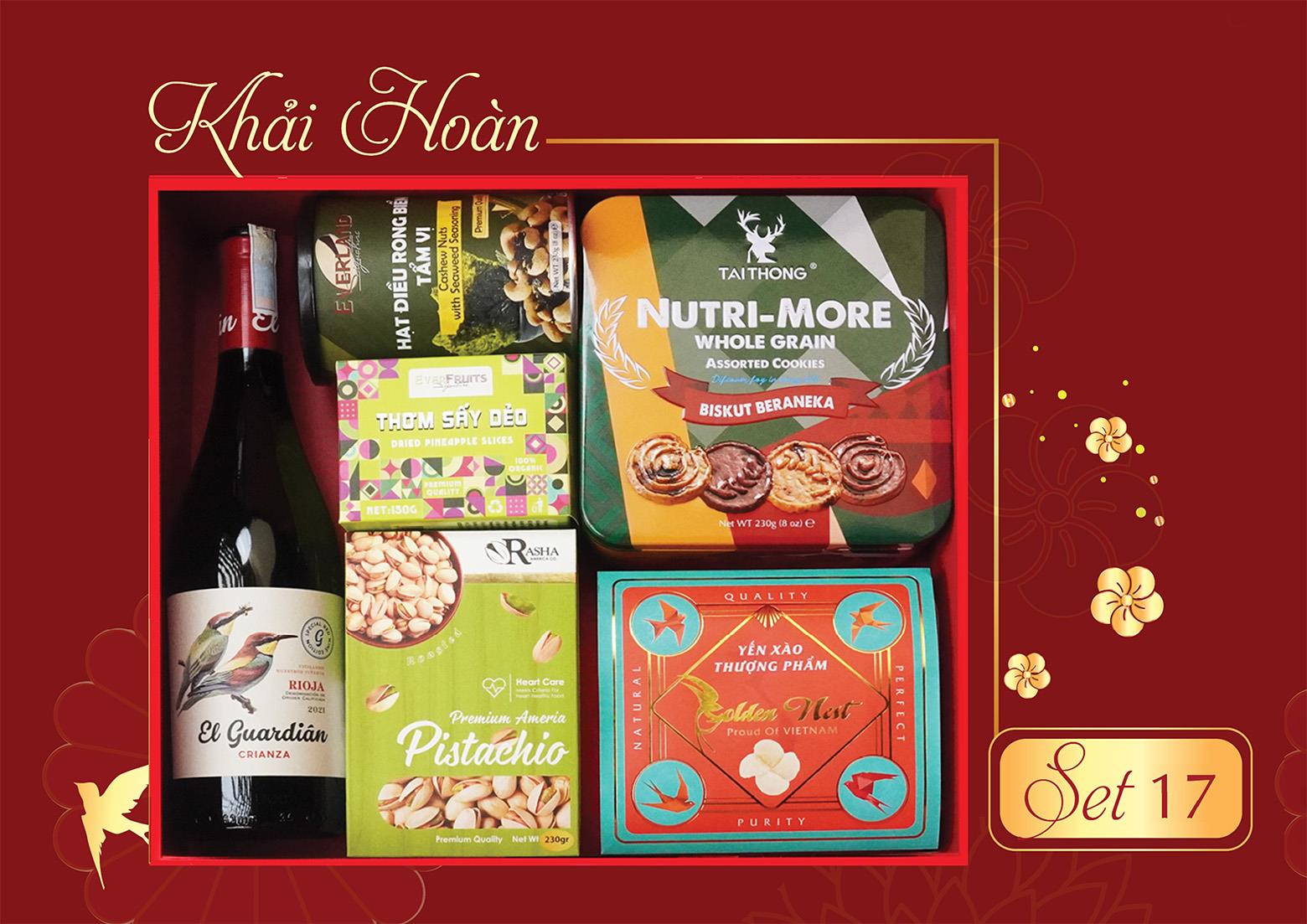 Bánh Quy Yến Mạch Nutri-More | Hạt Điều Tẩm Vị Rong Biển Everland | Thơm Sấy Dẻo Ever Fruits | Hạt dẻ rang mộc Everland | Yến Sào Thượng Phẩm Golden | Rượu Vang Đỏ EL Guardian Crianza | Bộ Hộp Và Túi Giấy Khải Hoàn