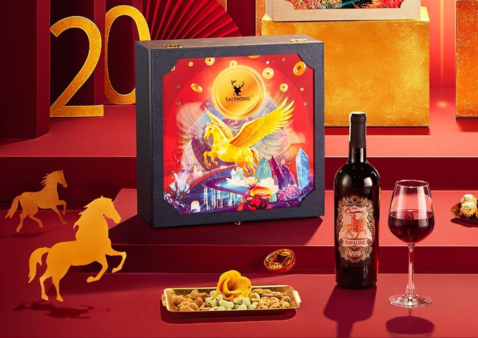 Hộp Quà Tết Khải Hoàn tỏa sáng với hình ảnh tuấn mã hoàng kim dũng mãnh và đôi cánh chắp bước cơ hội, lễ hộp Khải Hoàn là biểu tượng của vinh quang và chiến thắng rực rỡ.