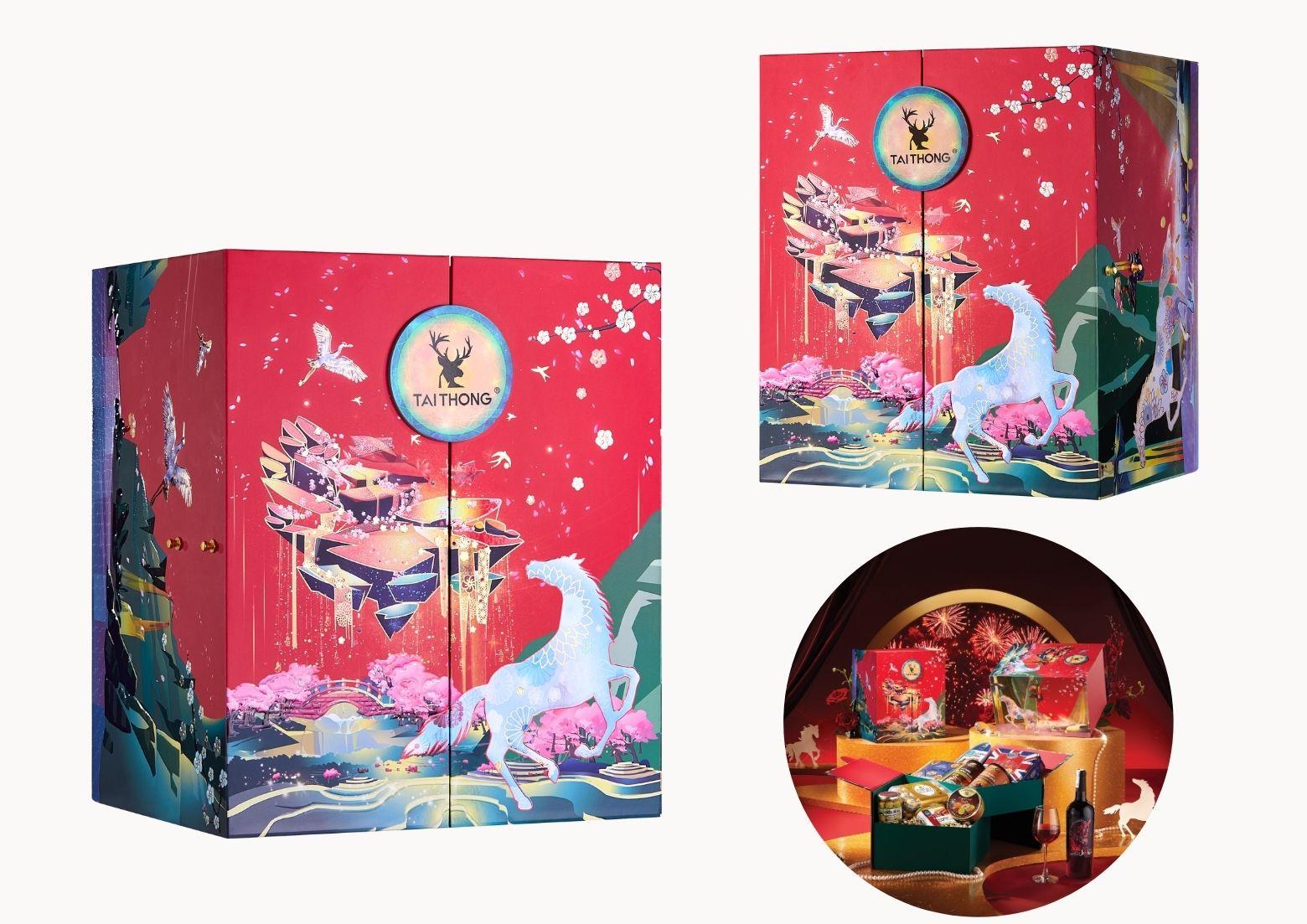 Hộp Quà Tết Mã Đáo với hình ảnh tuấn mã tung vó giữa cảnh sắc xuân, lễ hộp quà tặng Mã Đáo là lời chúc khởi đầu trọn vẹn cho năm mới thịnh vượng.