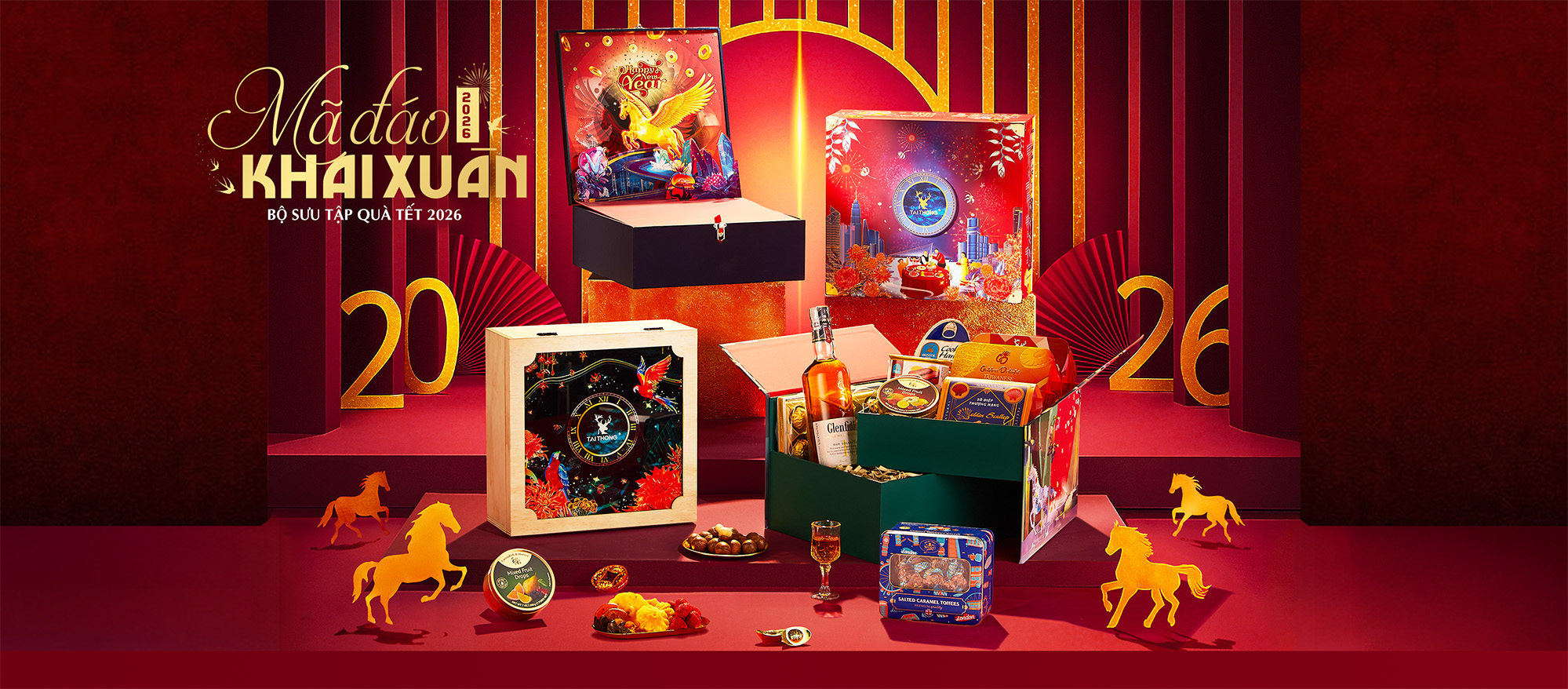 Tai Thong chính thức trình làng BST Quà Tết 2026 - “Mã Đáo Khai Xuân”, lấy cảm hứng từ năm mới Bính Ngọ. Khi hình ảnh ngựa tung vó trở thành biểu tượng của khởi đầu mạnh mẽ và vận hội bứt phá. Mỗi phiên bản là một lời chúc may mắn cho năm mới, gửi gắm thông điệp về sự thịnh vượng, vững tiến và hành trình trở về trong vinh quang.